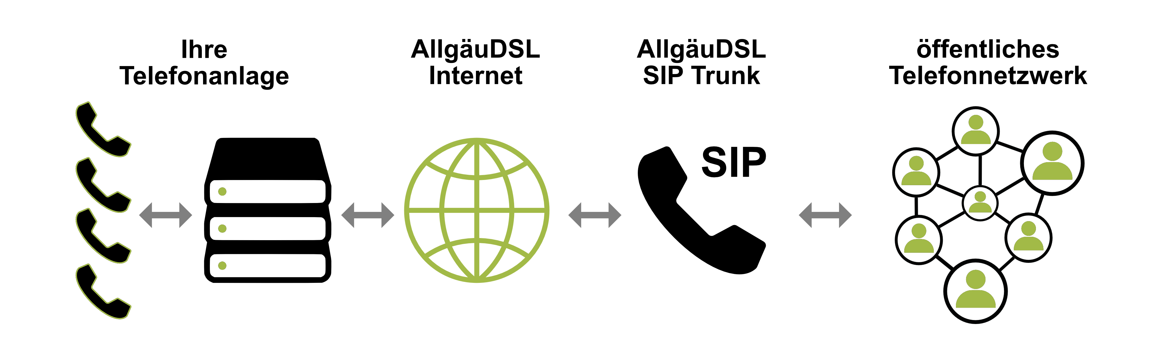 - Internetbasierte Telefonie: SIP-Trunking nutzt das Internet, um Anrufe und Daten zu übertragen, anstatt herkömmliche Telefonleitungen.