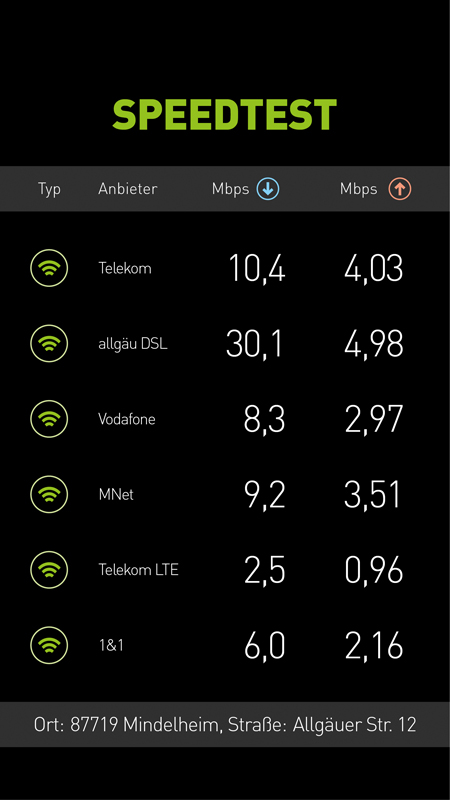 Die verlässlichsten Ergebnisse erhalten Sie beim Test über eine kabelgebundene Verbindung (LAN) und ohne andere auf Ihrem Endgerät laufenden Anwendungen. Diese Angabe ist für den Test wichtig.